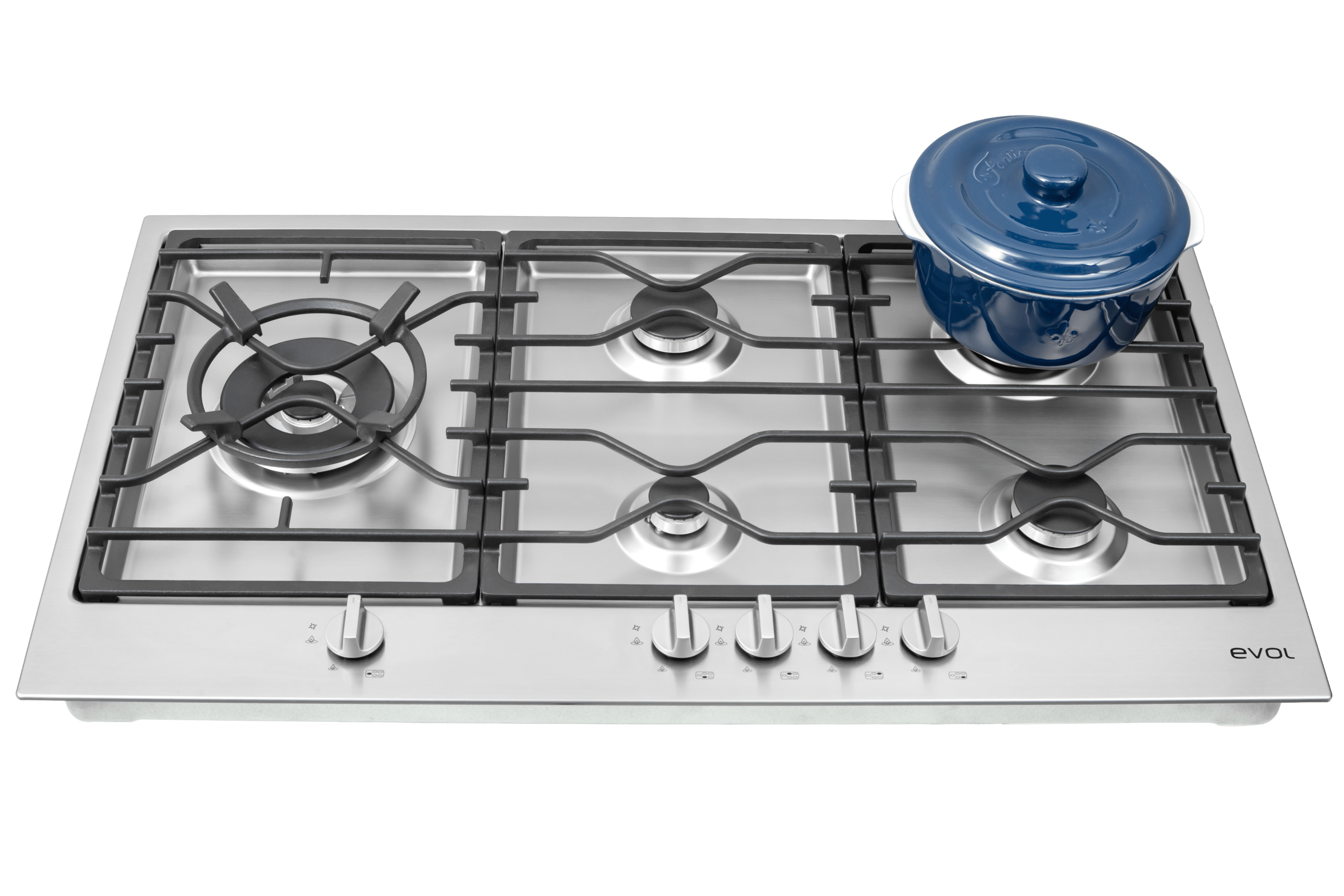 O Cooktop Riva a Gás Evol, com 5 queimadores, combina desempenho, segurança e design contemporâneo. Produzido em aço inox 304, é um modelo de embutir que entrega robustez, durabilidade e uma estética alinhada a projetos de alto padrão.