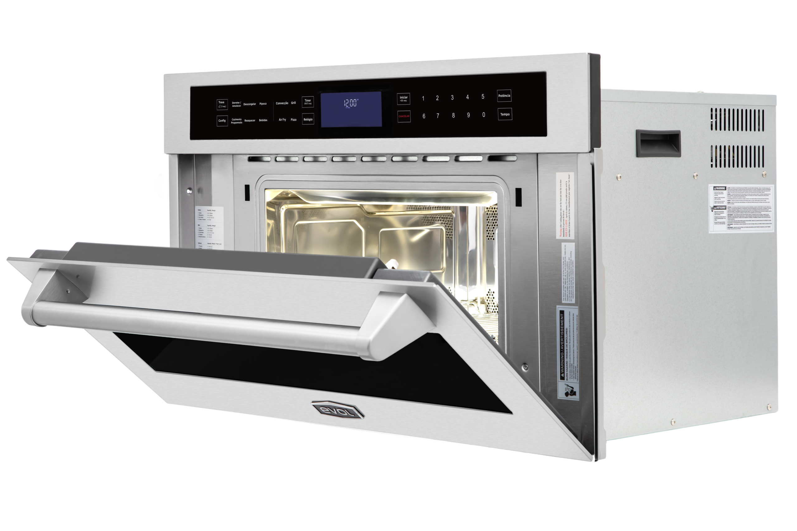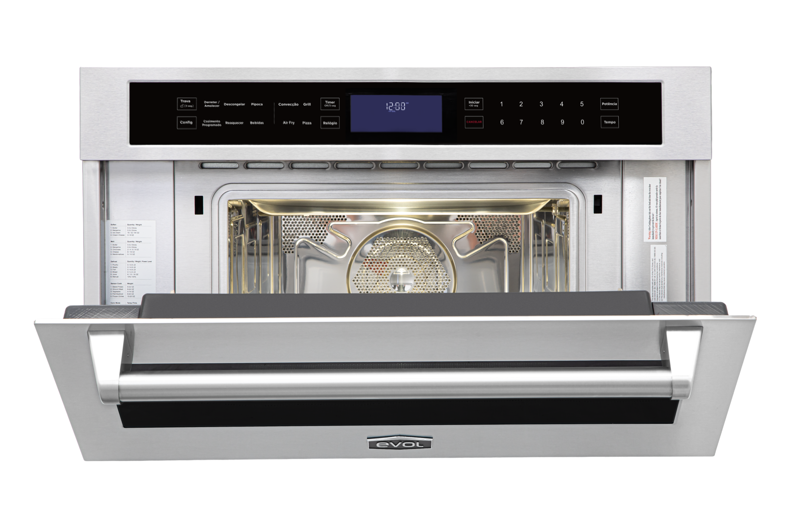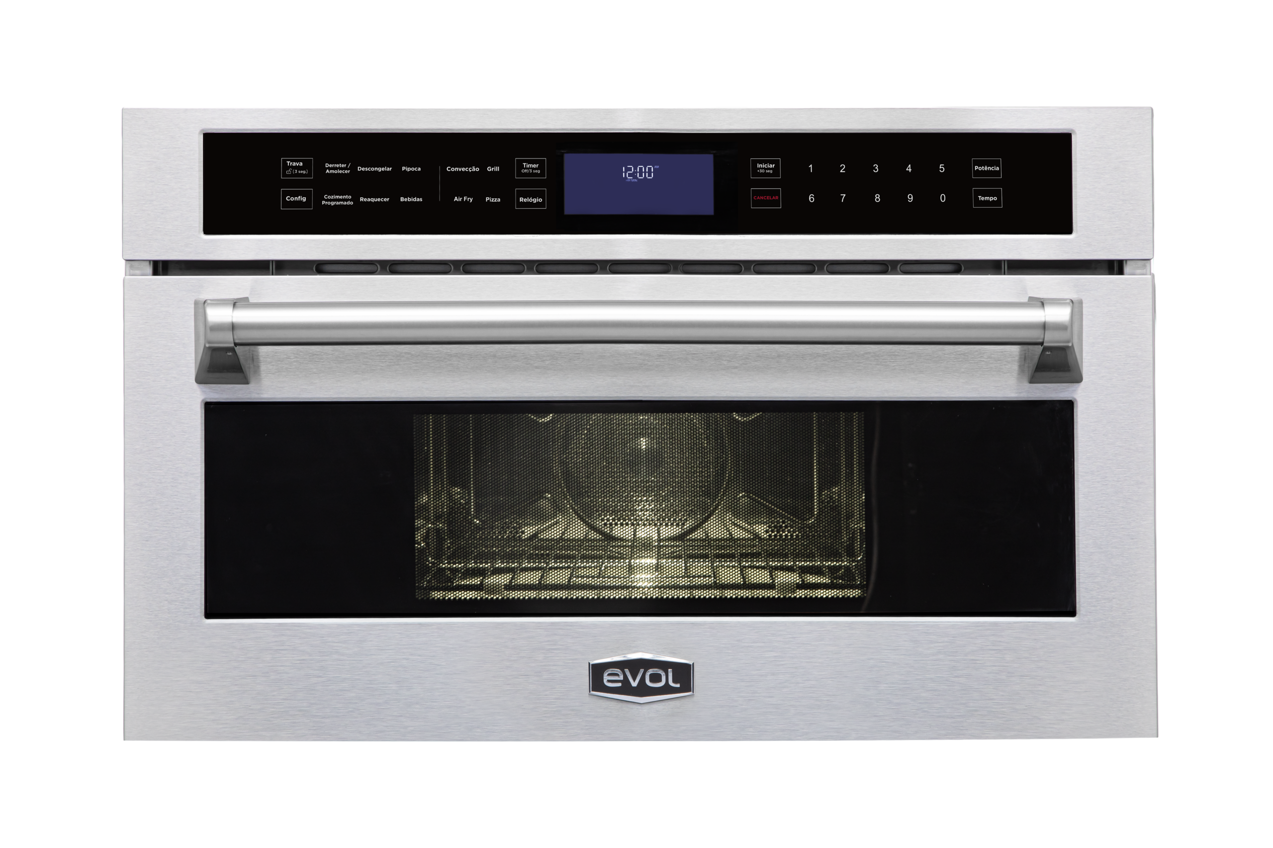 Um único equipamento, múltiplas possibilidades. Em português e com ajuste em °C, o Forno Combinado e Micro-ondas 76cm Evol combina micro-ondas, grill e air fry com robustez e embutimento perfeito para cozinhas sofisticadas.
